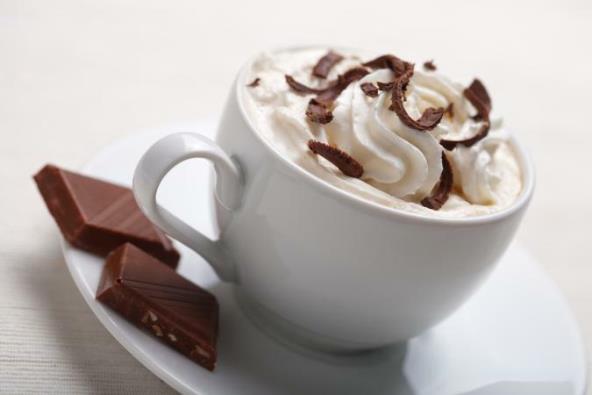 4. U šolje sipati kafu, u svaku šolju dodati po 10 ml ruma. Preko kafe sipati krem, ukrasiti šlagom i narendati čokoladu. Poslužiti sa po 2 kockice čokolade.