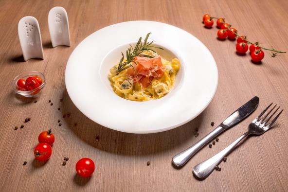 U dublju šerpu stavite oko 1,5l vode i kašiku soli. Kada voda provri, dodajte špagete. Nakon 10-ak minuta, isključite šporet i ostavite špagete u vodi nekih 5-10 minuta da se prohlade. Za to vreme iseckajte šunku/pršutu i izdrobite ili izrendajte sir. Procedite špagete i u šerpu dodajte kiselu pavlaku, majonez, sir, senf i šunku. Promešajte.
