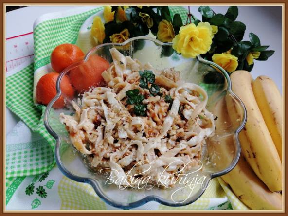 Time preliti rezance i dobro izmešati, dodati mlevene orahe i malo seckanih oraha.