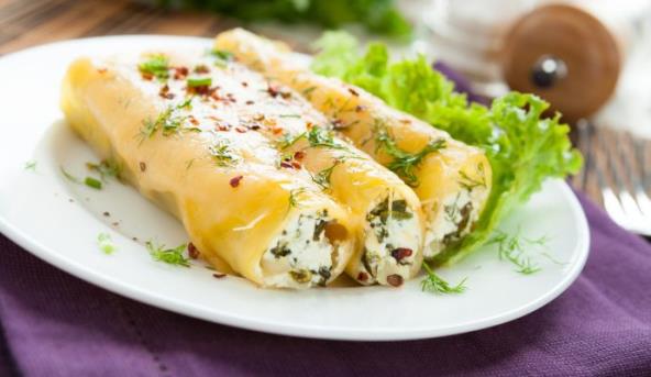 Napomena: Ovo je recept za kanelone koje ne morate da kuvate, ali ako koristite one koje se kuvaju, preporučujemo vam da skuvate lazanje, a kad se ohlade stavite na duži kraj fil, preklopite drugom polovinom lazanje, malo rukama rolajte po plehu kako biste dobili oblik kanelona i mesto sastava okrenite nadole u plehu u kome ćete ih peći.