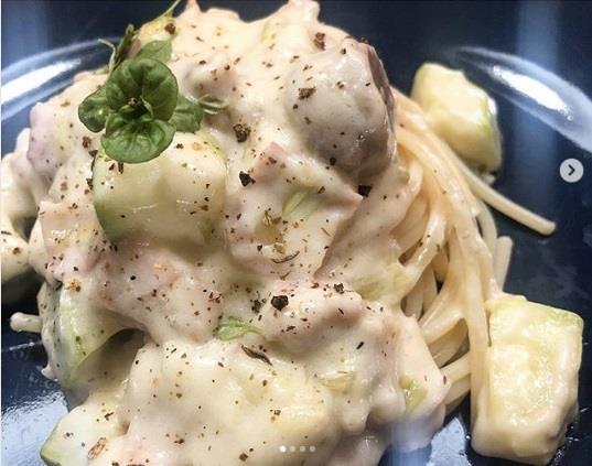 Propržiti praziluk, dodati šunku iseckanu na kockice. Kada pusti svoje arome i malo se uprži, dodajte pečurke i začine. Pred kraj ubacite tikvice, kada puste vodu, nek se krčka sve još par minuta. Otopiti puter i dodati beli luk, pržiti kratko uz konstantno mešanje na slabijoj vatri. Zatim dodati brašno i nastaviti sa mešanjem jos jedan minut. Postepeno dodavati mleko i kada dobijete dobru gustinu, dodajte još malo mleka i kačkavalj. Sve sjediniti i preliti preko prethodno skuvane testenine.