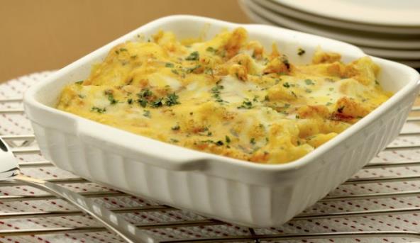 2. U međuvremenu pomešati mleko, ostatak pavlake i jaja. Kad su makarone pečene do pola, preliti ih pripremljenom smesom, posuti rendanim sirom i zapeći da dobiju lepu rumenu boju. Kad su gotove, seći ih na kocke i servirati tople.