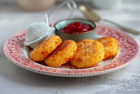 1. Sipati mleko u dublju posudu i u njemu razmutiti sir, jaja i šećer. Izmešati brašno i prašak za pecivo, pa sve zajedno dodavati polako u smesu sa sirom. Mutiti sve dok se ne dobije ujednačeno testo. Ostaviti dobijeno testo za palačinke da se odmori oko 30 minuta.