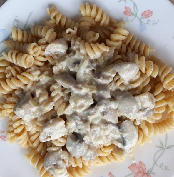 Kada pečurke omekšaju dodajte pavlaku za kuvanje, još par minuta dinstajte. Kada su makarone gotove prelijte ih sosom.