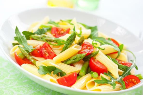 3. Izmešati špargle, pastu, paradajz i sos. Servirati posuto listićima bosiljka. Uz pastu poslužiti belo vino.