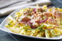 Testenina će da upije deo sosa i dodatno omekša. Poslužiti posle 10 – 15 minuta od dodavanja testenine.