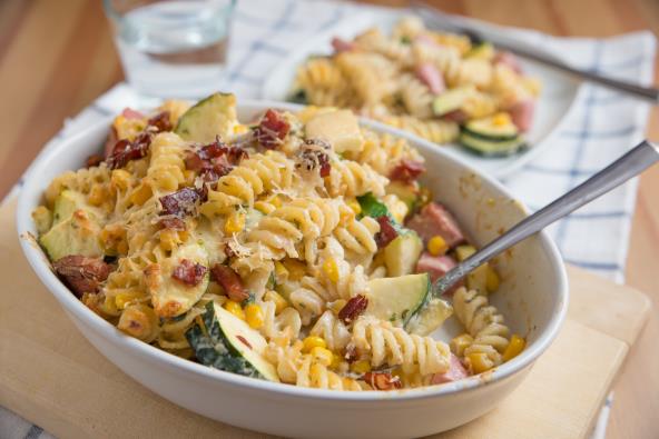 Jela sa testeninama se brzo pripremaju, a svima se dopadaju. Sosevi mogu biti različiti, kao i vrste testenine, tako da uvek imate drugačiji obrok. Dok u prodavnicama još uvek ima tikvica možete pripremiti ovu ukusnu pastu sa njima, šunkom i kukuruzom. Ništa lakše, a imaćete ručak za celu porodicu za kratko vreme.