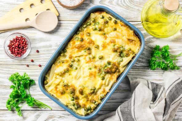 Recept za karbonara pastu sa graškom i jajima, zapečena u rerni