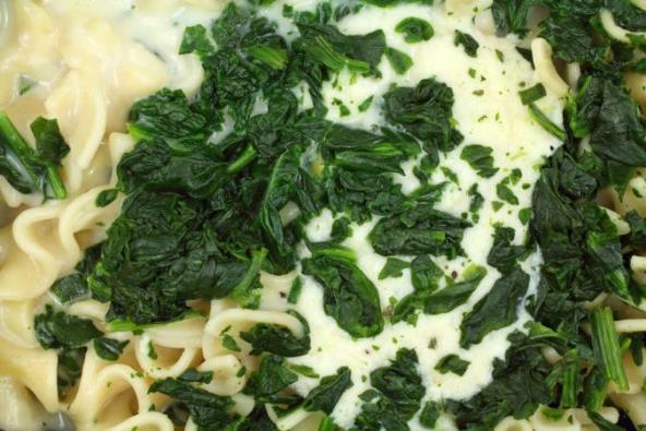 4. Istopiti ostatak sira u šeripici. Servirati pastu u tanjire pa preliti sirom i pripremljenim spanaćem.