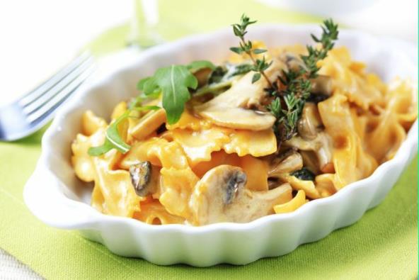 1. Razmekšati vrganje u 250 ml tople vode. Sveže pečurke očistiti i po želji iseckati. Skuvati testeninu prema uputstvu s pakovanja.