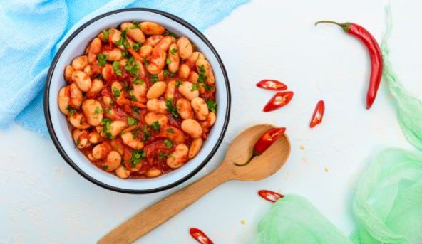 1. U činiju stavite skuvan pasulj, paradajz iseckan na kockice, kao i slatku i ljutu papriku. Dodajte i iseckani bosiljak.