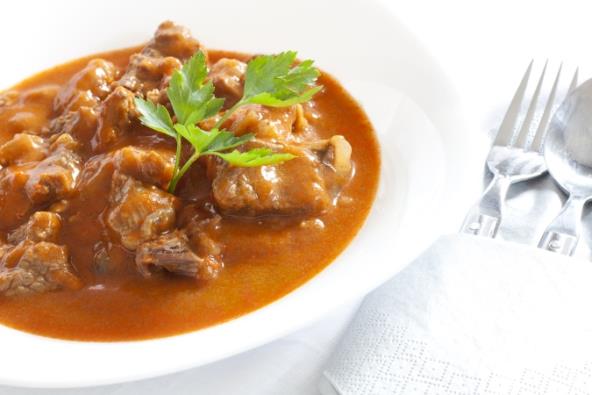 4. Sve promešajte i dodajte vino, a kad gulaš postane malo gušći jelo je gotovo.