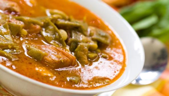 2. Za to vreme operite boraniju, prepolovite je, dodajte mesu i kuvajte još 20 minuta. Dok se kuvaju meso i boranija, paradajz prelijte vrelom vodom, oljuštite ga i isecite na manje komade, pa zajedno sa čubrom i kockom za supu dodajte boraniji i mesu. Kuvajte sve dok boranija potpuno ne omekša.