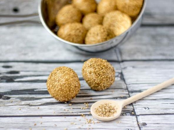 Kuglice uvaljamo po želji u prepečeni susam, mleveni kikiriki ili mleveni smoki.