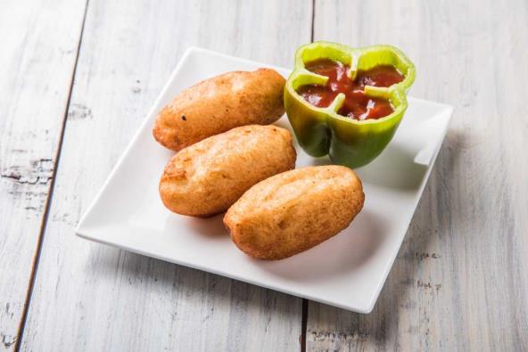 Skuvajte krompir i zdrobite ga gnječilicom. Na zagrejanom biljnom ulju propržite sitno nasceckane čili papričice, narendani đumbir i beli luk otprilike jedan minut. Dodajte smrznuti grašak i sve dobro promešajte. Dinstajte jedan minut. Dodajte kurkumu i čili u prahu. Promešajte. Dodajte naseckane indijske oraščiće. Zatim dodajte zdrobljeni krompir i sve zajedno dobro promešajte. Dodajte preostale začine: kumin, garam masalu i so. Sve dobro promešajte, smanjite temperaturu i termički obrađujte otprilike 2-3 minuta. Na kraju dodajte listiće korijandera i sve dobro promešajte. Pustite da se nadev u potpunosti ohladi. Odrežite koricu s krajeva tost hleba. Svaku krišku kratko potpite u posudu s običnom vodom, pa ocedite višak tečnosti. U sredinu tako pripremljenog hleba dodajte kašiku nadeva i zarolajte dok ne dobijete rolnicu nalik na kroket. Ponovite postupak dok ne potrošite sve sastojke. Rolnice pecite u vrelom ulju sve dok ne dobiju zlatno-smeđu boju. Poslužite ih s umakom po želji.