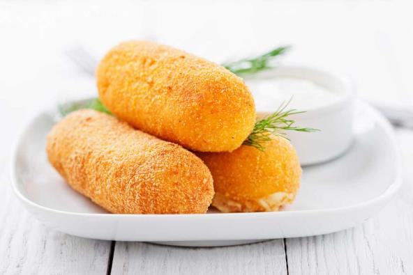 Krompir skuvajte sa sve ljuskom. Kada se malo prohladi očistite i isecite, pa stavite u neku posudu. Zatim sa kašikom za pire malo izdrobite krompir. Dodajte umućeno žumance koje ste posolili i pobiberili. Opet kašikom za pire izdrobite sve. Zatim dodajte rendani parmezan i običnom kašikom lepo sjedinite smesu. Rukom vadite po malo smese i pravite valjkaste oblike. Umočite u smesu za poh, prvo u umućena jaja, pa u prezle. Pržite u dosta ulja dok ne dobiju zlatno smeđu boju.