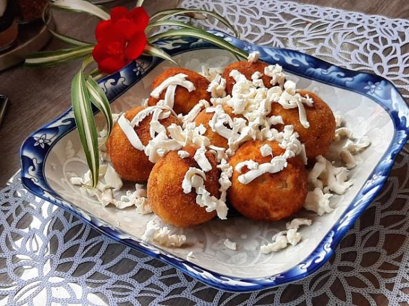 Stavite u šerpu vodu i posolite, pa kad provri skuvajte kačamak. Ostavite da se malo prohladi, a zatim vadite kašikom na dlan koji ste malo premazali uljem. U sredinu stavite kocku sira i pritisnite sa svih strana, pa formirajte knedlu. Knedlu uvaljajte u hlebno brašno, jaja i prezle. Pržite u dosta ulja. Vadite na ubrus.