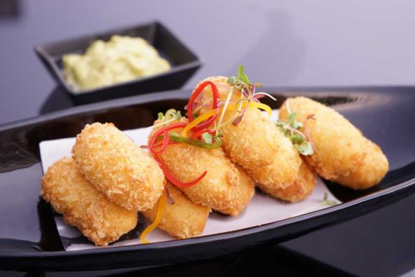 Iseckajte crni i beli luk i propržite dok ne omekša u maslacu i ulju. Dodajte rendane tikvice sa malo soli i dinstajte 12-15 minuta. Sipajte brašno i mešajte 2 minuta, nakon toga polako dodajte sveže mleko i mutite žicom dok ne dobijete smesu bez grudvica. Kuvajte na umerenoj vatri dok se ne zgusne lepo i dok ne počne da se odvaja od ivica posude. Začinite muskatnim oraščićem, belim biberom i sa još soli ako je potrebno. Gotovu smesu prebacite u posudu, pomešajte sa mrvljenim sirom i ostavite da se potpuno ohladi. Obavezno pokrijte posudu providnom folijom da bude zalepljena uz smesu. Nakon što se ohladi, stavite u frižider na minimum 4 sata ili do sledećeg dana. Vlažnim ili namazanim rukama uzimajte po malo smese. Stisnite u dlanu i oblikujte duguljaste krokete. Nije potrebno da budu savršenog oblika. Bez pritiskanja prvo uvaljajte u brašno, posle u jaja i na kraju u prezle. Pržite krokere u jako zagrejanom ulju, dok ne postanu zlatasti sa hrskavom koricom. Izvadite na ubrus da se ocedi višak masti.