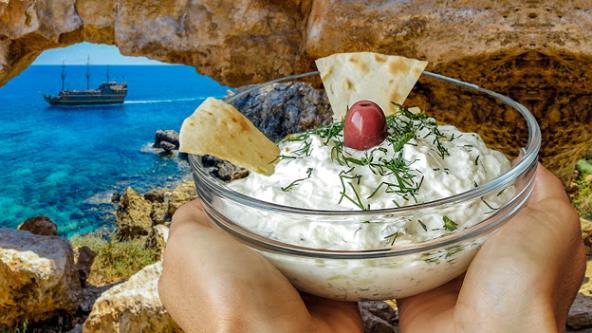 Izrendajte oljušteni krastavac, posolite i ostavite 20 minuta da pusti vodu. Izgnječite beli luk, dodajte grčki jogurt, feta sir, maslinovo ulje i sve dobro promešajte. Dodajte proceđeni krastavac, iseckajte nanu i mirođiju i dobro promešajte.