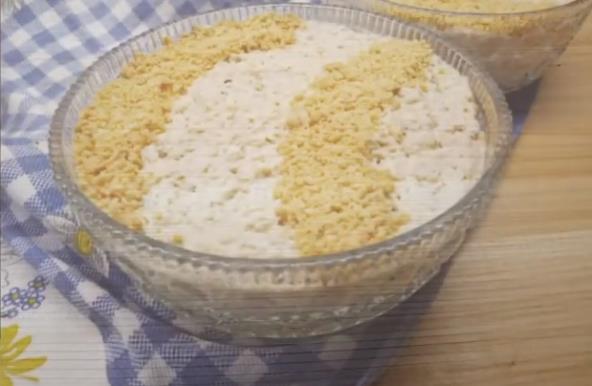 Belo meso skuvajte i usitnite, a susam propržite u suvom tiganju kratko i ostavite da se ohladi. U posudi pomešajte pavlaku, majonez, biber, susam i kikiriki koji se usitnili u blenderu. Lepo promešajte da se sastojci sjedine, pa probajte ako treba da se posoli. Dodajte piletinu i opet sve sastojke lepo sjedinite.