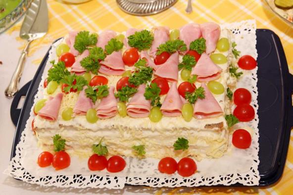 Predjelo koje osvaja i izgledom i ukusom. Isprobajte recept za slanu tortu sa dve različite kore i filom od šunke i kačkavalja.