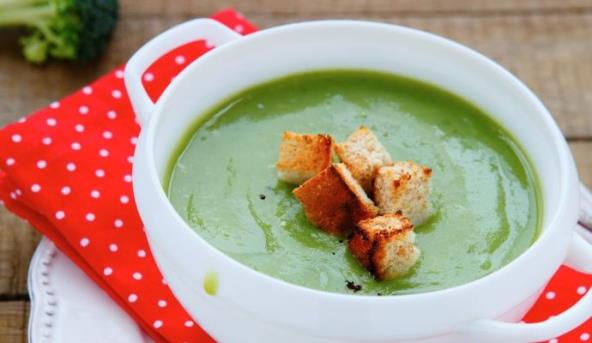 3. Supu procediti, ponovo je sipati u šerpu i dodati listiće začinskog bilja. Supu ispasirati i ostaviti da još jednom prokuva. U supu umešati slatku pavlaku, pa začiniti solju i biberom po ukusu. Sipati u tanjire i umešati po kašiku kiselog mleka. Servirati posuto krutonima.