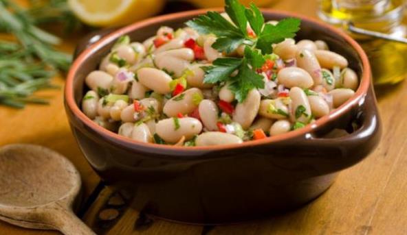 1. Pasulj ocedite, isperite hladnom vodom i ponovo ocedite. U sirće dodajte so, biber, na vrh noža šećer, oljušten i iseckan luk, izgnječen beli luk, i sve dobro izmešajte sa uljem. Ovim začinite pasulj i ostavite da odstoji pola sata.