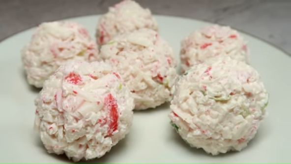Isecite krabu i mladi luk, pa izblendirajte, ali ne skroz sitno. Ako koristite sardinu ili tunjevinu dobro je procedite. Pomešajte sa krem sirom i pravite kuglice.