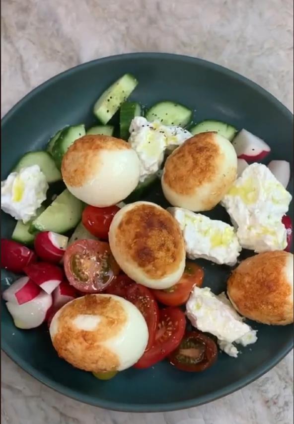 Salata sa kuvanim jajima je egipatsko jelo koje se služi za praznike, obično za Uskrs. Sada možete da je napravite kod kuće, jer je jednostavna, a siguno su vam ostala jaja posle praznika. Nemojte da bacate, nego isprobajte zanimljivu salatu koja će vas oduševiti već na prvi zalogaj. Jaja su hrskava, a sir i povrće daju poseban šmek.