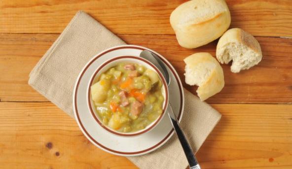 1. Crni i beli luk iseckajte što sitnije, pa ga prodinstajte u dubljoj šerpi na malo ulja. Dodajte meso i šargarepu isečene na sitne kocke, posolite i pobiberite. Kad je meso dinstano, dodajte grašak, malo vode, isečen krompir, lovorov list i poklopite. Ostavite da se krčka dok meso, krompir i grašak ne budu sasvim skuvani i meki.