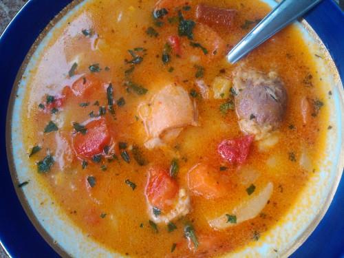 Na malo ulja propržiti sitno iseckan luk, pa kada malo omekša, postane staklast dodati tanju šargarepu isečenu na kolutiće. Stalno mešati da se sve malo uprži, a na taj način i šargarepa malo pusti boju, pa dodati crvenu papriku isečenu na kockice, kao i karfiol na veće i li manje cvetiće, zavisi da li ga vaši ukućani vole i da li morate kasnije da ga izvadite iz lonca. Naravno veće komade je lakše pronaći i odstraniti. :) Sve malo upržiti i dodati meso i isečen krompir. Sve dobro izmešam i nalijem vodu, zavisi od količine povrća i mesa, u svakom slučaju potrebno je da sve dobro pliva, dodam paradajz koji sama pravim, a možete koji imate ili dodate 2-3 oljuštena i iseckana paradajza, bez semenki, poklopim, smanjim jačinu ringle i to se sve krčka dok se meso i povrće ne skuvaju odnosno postanu mekani. Probate ukus, da li je dovoljno slano, malo pobiberite, dodate ljute papričice ili alevu, tek da dobije neku pikantnu notu, uostalom sve po ukusu. Prijatno Vam drage moje! kodbakeugostima.blogspot.com