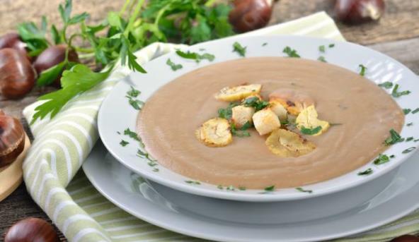 5. Kuvajte oko 20 minuta i potom propasirajte. Posolite, malo pobiberite, dodajte i malo muskatnog oraščića, i namrvite ostatak kestena.