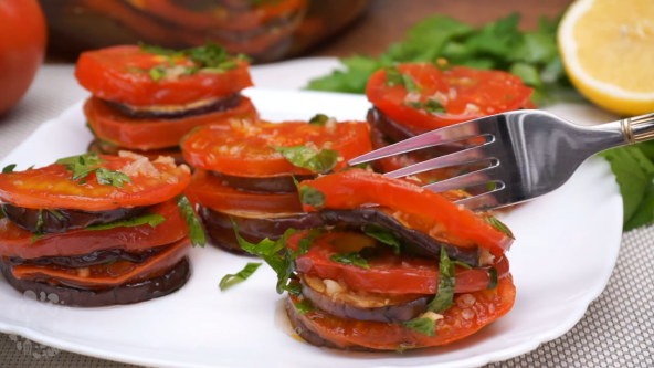 Patlidžan mariniraje u aromatičnoj marinadi, pa posložite u posudu zajedno sa paradajzom. Ovi sitni zalogaji su lagani i odlično rešenje kada su napolju visoke temeprature, a priprema uopšte nije komplikovana. Zbog svog dekorativnog izgleda i fenomenalnog ukusa dobar su izbor kada je svečana trpeza u pitanju.