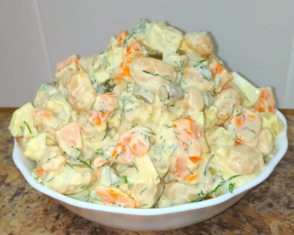 Pored ruske i mimoze koje su neprikosnovene kada napolju zahladi, predlažemo da napravite još jednu divnu salatu sa krompirom i kuvanim jajima, samo ovaj put dodajte i pasulj. Za preliv koristite majonez i pavlaku. Salate ukrašavaju svaku slavsku i svečanu trpezu, a ova će se posebno istaći.