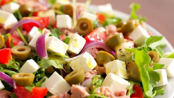 Kada dođemo sa posla, a umorni smo da bismo spremali večeru rešenje su obrok salate. Lako i jednostavno se prave, sastojke uglavnom možemo kombinovati od onoga šta trenutno imamo u frižideru, i što je najvažnije zasitne su. Na taj način unećemo sve potrebne hranljive materije, a nećemo potrošiti mnogo vremena na pripremu. Sve što vam treba za ovu salatu je jedna konzerva tunjevine, feta sir i povrće poput paradajza i krastavca. Sve iseckate, pomešate i prelijete maslinovim uljem i limunovim sokom.