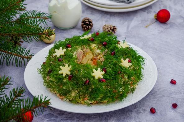 Salata Božićni venac sa piletinom baš podseća na rusku salatu, ali je malo ukusnija i ima više sastojaka. Ako vam ostane piletine možete da napravite i najlepšu novogodišnju salatu sa dimljenom piletinom. Vreme je svečanih slavlja, a samim time i vreme pripremanja prigodnih jela koja krase naše svečane trpeze. Među njima, posebno mesto zauzima salata Božićni venac sa piletinom – pravi simbol topline, udobnosti i zabavnih trenutaka. Isprobajte ovaj ukusni prilog!