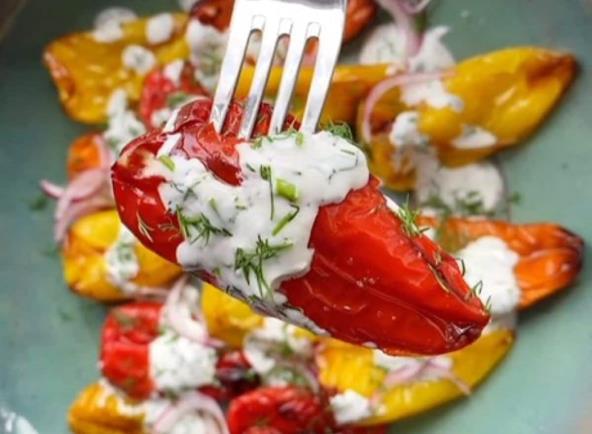 Recept za salatu od pečenih paprika sa prelivom od pavlake: