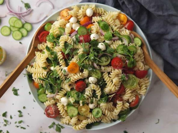Salate su odličan predlog kada želite da pojedete nešto lagano i što se na brzinu sprema. Naš današnji predlog je da isprobate i recept za mediteransku salatu sa makaronama za koju će vam biti potrebno manje od pola sata. U nju se dodaje još i baby mocarela kao i najbolji italijanski dresing.