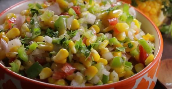 Kakob ste napravili obrok salatu sa kukuruzom, prvo u činiju sipajte vodu i ubacite kukuruz i dobro ka prokuvajte. Nakon toga ga proceđenog prebacite u činiju.