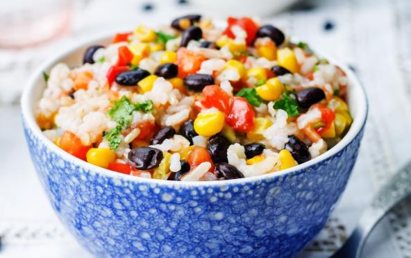 Kako biste napravili salatu, prvo skuvajte pirinač, ocedite ga i ostavite da se prohladi. Pasulj po želji kuvajte ili kupite gotov u konzervama. Ukoliko kupujete pasulj u konzevi obavezno ga isperite i ocedite.