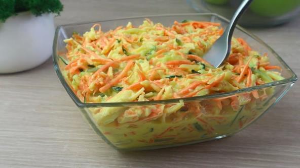 Šargarepu i krastavac oljuštite i narendajte. Kačkavalj takođe narendajte pa pomešajte sa povrćem u činiji. Dodajte majonez u zavisnosti koliko kremasto želite da bude. Ukoliko ima potrebe posolite. Pre služenja stavite malo salatu u frižider da se ohladi.