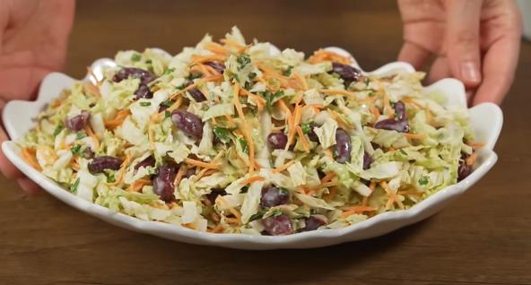 Recept za salatu sa kupusom, šargarepom i pasuljem: