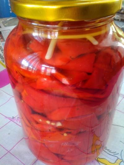 Vodu staviti da provri dodati sirće, šećer, med, so i konzervans. U toj vodi obariti malo papriku 2-3 min. Ohladjenu papriku redjati u tegle i naliti hladnim sokom u koga ste dodali 1 vinobran (5 gr.) Pritisnuti plastičnim zatvaračima i zatvoriti poklopcima. Ostaviti na mračno i hladno mesto da čeka zimu. Prijatno dragi moji! kodbakeugostima.blogspot.rs
