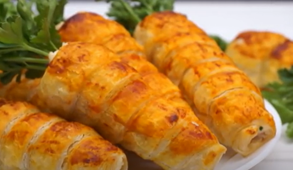 Kako biste pripremili lisnato testo na ovaj način, uzmite komad testa i malo ga razvaljajte u pravougaoni pleh debljine oko 3 mm. Testo isecite na dugačke trake širine 2 cm. Svaku traku testa obavijte oko cevi za pečenje rolnica. Same cevi ne treba podmazati. Imajte na umu da ne morate da razvlačite testo kada ga motate, inače će popucati tokom pečenja. Na kraju ivice testa jako dobro zalepite jednu za drugu na svakoj cevi, da se ne bi odmotalo tokom pečenja.