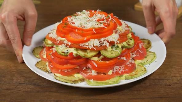Ova složena salata nije samo osvežavajuća već i prava gozba za oči — slojevi tikvica, povrća, sira i majoneza čine je savršenom za posluženje kad želite da impresionirate goste ili počastite sebe nečim posebnim.
