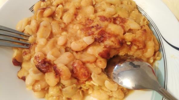 Pasulj očistiti dobro opraati. Naliti da ogrezne, kuvati 5-6 min. pa baciti prvu vodu. Naliti novu vodu dodati biber u zrnu, zelenu papriku, i lovorov list. Sipajte i malo ulja nekoliko kapi da se ne oseća jačina jakog mirisa pasulja pri kuvanju. Kad se pasulj skuva, zavici od pasulja, moj se kuvao sat vremena, pustite da voda uvri i ostane samo malo. Ispržite luk i praziluk na ulju, pa kad se dobro ispržio dodajte sve začine seckan beli luk i dobro izmešajtte. U dujuveč sipajte prvo kuvan pasulj jednu trećinu, pa pržen luk, pa pasulj, przen luk pasulj, luk i na kraju pasulj. Malo protresite, i stavite da se zapeče oko 30 min. na 250 stepeni C Služite uz salatu. Prijatno iz bakine kuhinje...