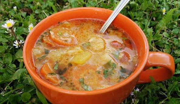 2. Kad se to proprži dodati 1 kafenu kašičicu aleve paprike zatim seckan krompir i tikvicu sečenu na kockice. Sve dobro izmešati i naliti vodom da se krčka.