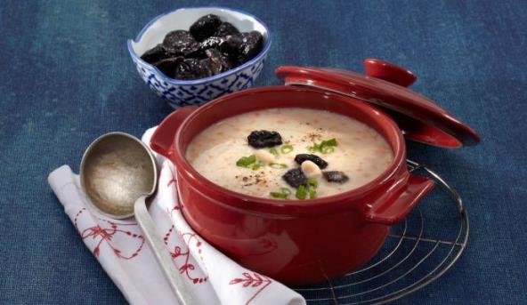 2. Na zagrejanom ulju propržiti brašno, sipati nekoliko kašika tople vode da bude kašasto pa dodati u sočivo sa suvim šljivama. Čorbu kratko kuvati, zatim začiniti sirćetom i solju, dodati vrlo malo šećera i ostaviti poklopljeno 10 minuta.