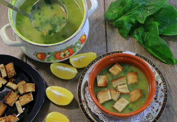 Šargarepu, celer, krompir izrendajte i stavite u šerpu sa crnim i belim lukom. Propržite na ulju pa dodajte iseckan spanać, kocku za supu, prelijte vodom i kuvajte oko 15 minuta.