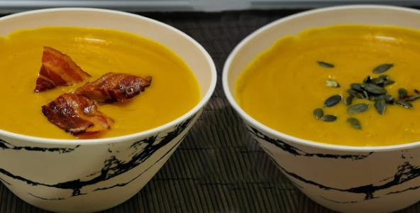 Isecite bundevu na kocke, a jabuku na kriške i luk rebrasto. Stavite u posudu za pečenje sve sastojke, pa posolite i pobiberite. Dodajte maslinovo ulje i promešajte rukama. Belom luku isecite vrh i stavite ga u foliju zatim ga dodajte sa ostalim sastojcima. Pecite u rerni na 200°C oko 45 min. Na pola pečenja promešajte sastojke. Kada se ispeče stavite sastojke u šerpu. Dodajte bujon i štapnim mikesrom isitnite potaž.